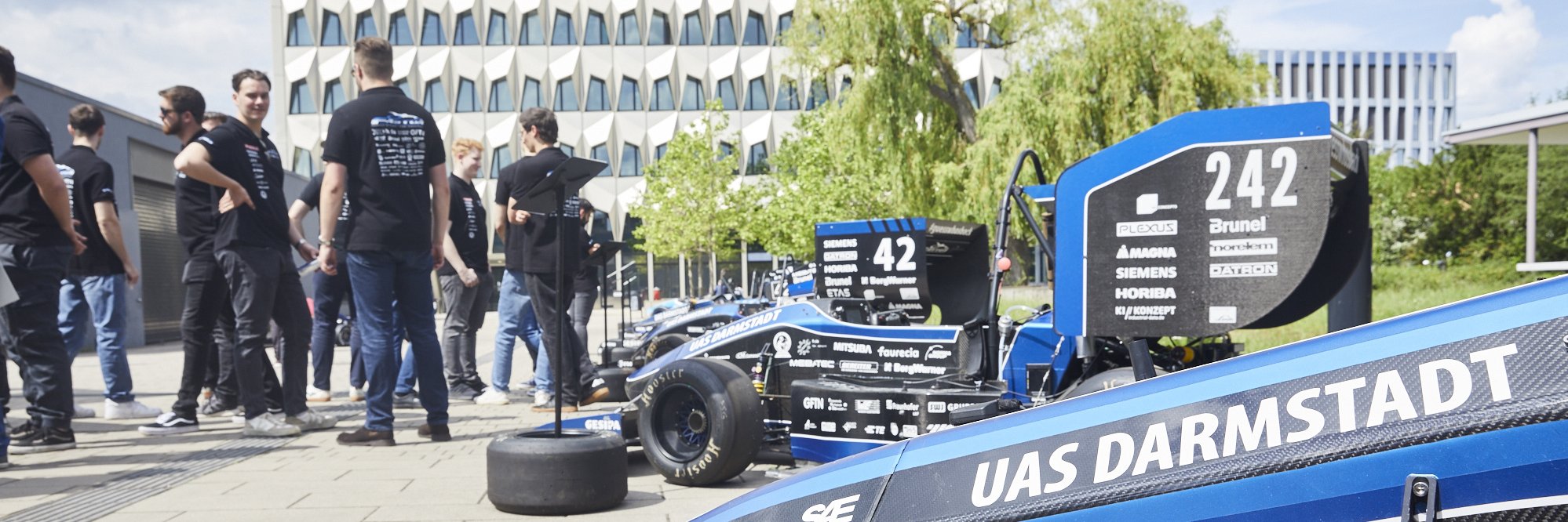 The transition from combustion engines to electric drives is taking hold in the international “Formula Student” competition, too. Under their streamlined bonnets, the racing cars have to be completely rethought and redeveloped. The “FaSTDa” student racing team from Darmstadt University of Applied Sciences is also rising to this challenge. They have now presented their new “F 24” racing car to the public for the first time on the university campus.