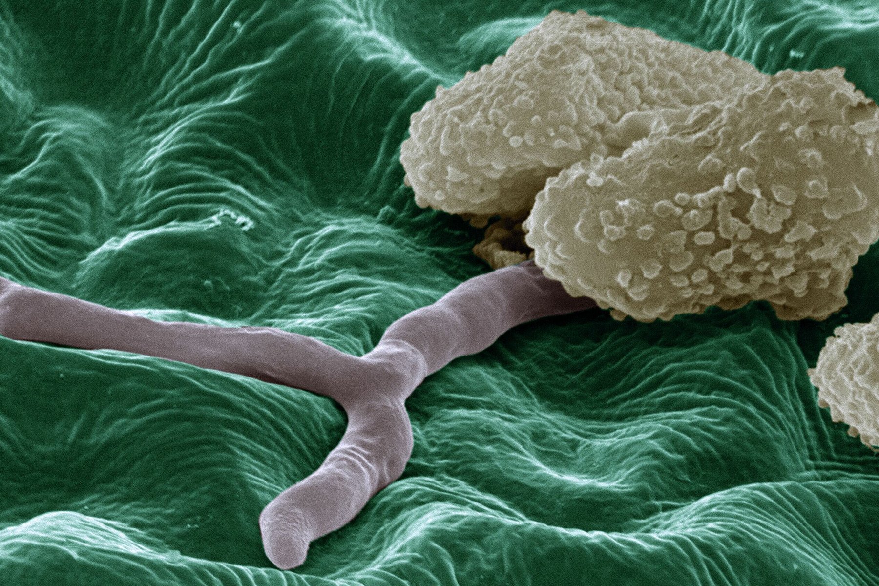 To do this, the cunning fungi delve into their bag of molecular biology tricks: “For example, they can secrete enzymes that ‘eat away’ the cell wall.” Behind it, the fungus comes up against the cell membrane, which is permeable for some substances, such as sugar molecules that the plant produces in its cells during photosynthesis. “The plant cell happily releases these to the outside, ‘assuming’ that they will be transported to the roots or flowers. But if the fungus has just ensconced itself there, it can simply harvest the sugar.”