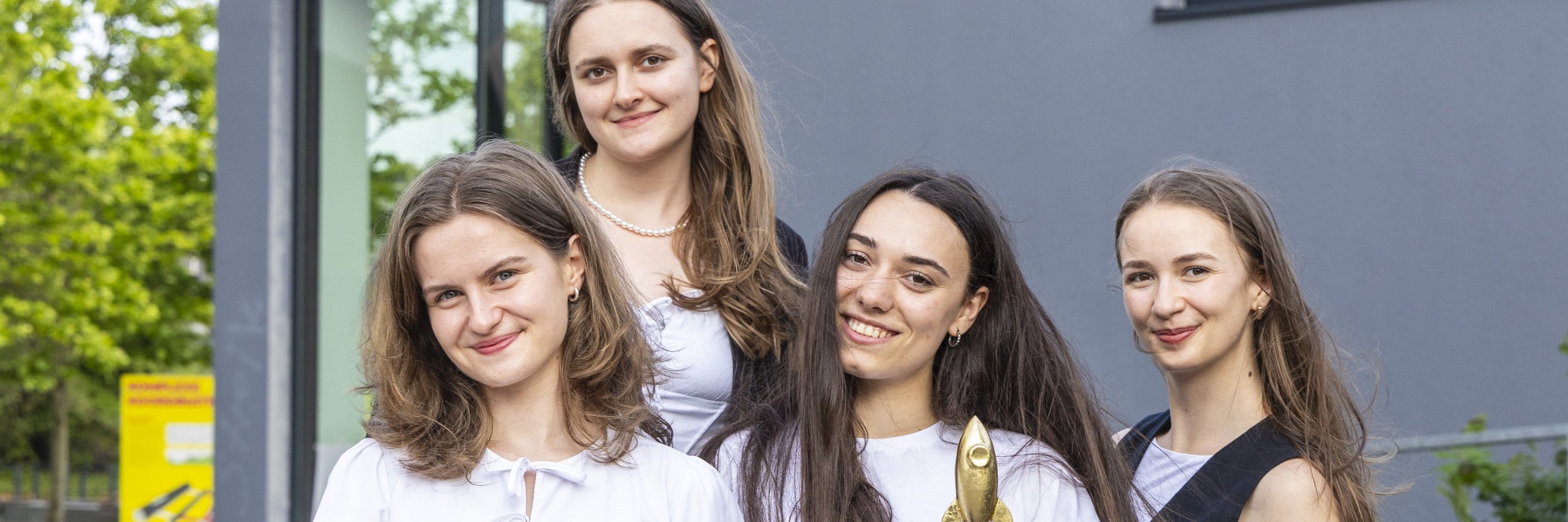 The final took place in early June at the Darmstadt University of Applied Sciences in Germany, during the EUT+ Week. Eight teams presented their ideas in front of a jury and audience. The pitches were impressive, but one stood out and deeply moved everyone. The team Rhythm Touch from the Technical University of Cluj-Napoca, Romania, composed of four students – Bara Iulia, Mihali Mărioara, Popa Ioana, and Rizel Cătălina – presented an innovative bracelet that allows people with hearing impairments to feel music through vibrations. During their presentation, a video was shown featuring deaf individuals dancing with the help of the device. The room fell silent – and then erupted in applause.