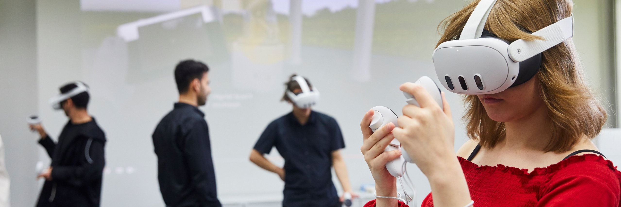 Mirabella, a student from Italy, is full of exuberance and already well-versed in using a VR headset. She kneels down, changes position and operates the controllers just like a real camera. “It’s great fun,” she says afterwards. She likes the fact that she can practise taking photos under expert supervision. “A very practical experience,” she adds. Her fellow student Karam is also impressed: “It’s a very good way to familiarise yourself with Virtual Reality tools and learn the basics of photography.”