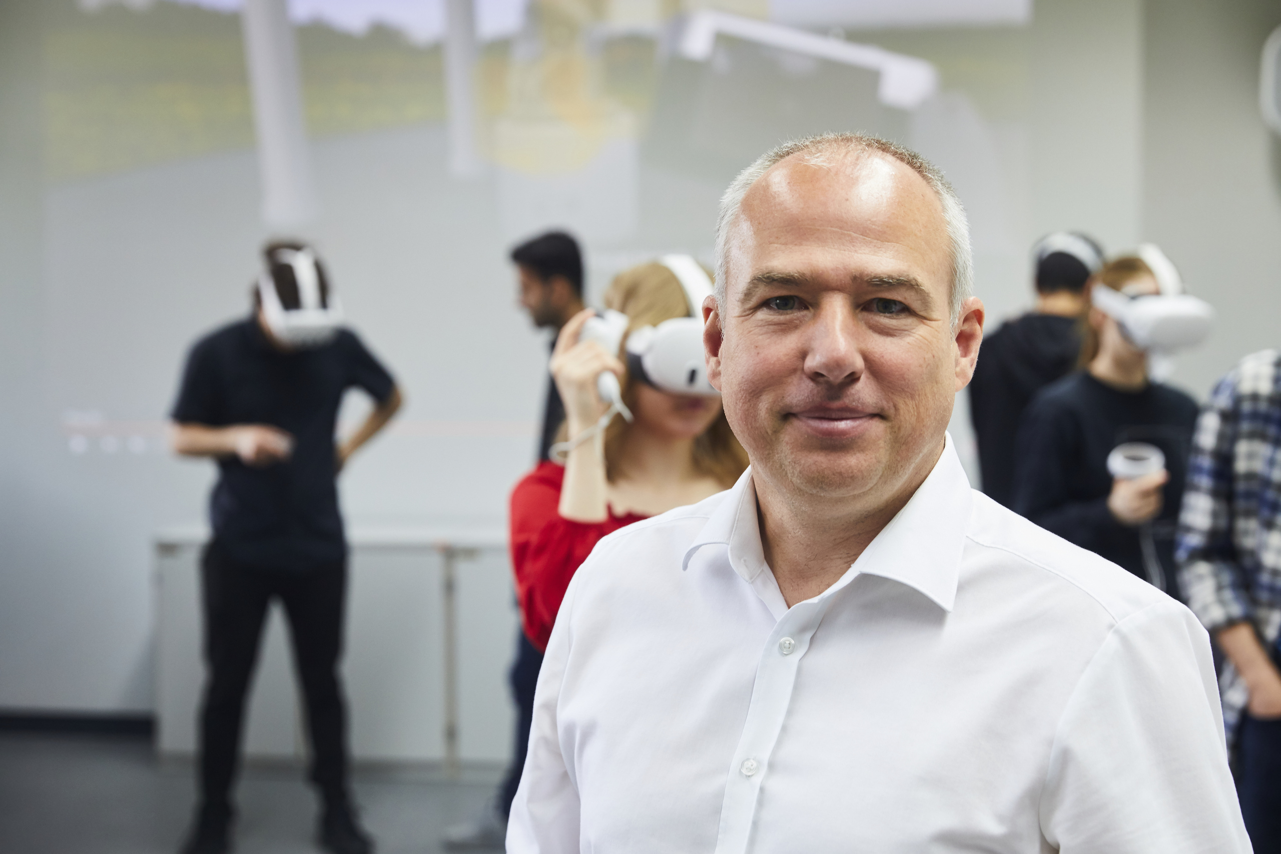 Gestartet ist das Projekt vor zwei Jahren, berichtet Professor Paul Grimm, der am Fachbereich Media Virtual Reality und Augmented Reality lehrt. Seither hat es viel Input und Ideen gegeben. „Wir nutzen die Synergien der verschiedenen Hochschulen.“  Entwickelt haben die Teams etwa die Plattform „fuelsME“, mit der eigene VR-Entwicklungen ausprobiert und zur Verfügung gestellt werden. Die Partner können darauf zugreifen und sie für jeweils eigene Szenarien, Standorte oder Studiengänge nutzen. Eignen sich die neuen Lernszenarien für alle Fachbereiche gleichermaßen? „Der Einsatz muss individuell betrachtet und bewertet werden“, sagt der Professor. „Die größten Vorteile durch den Einsatz von Virtueller Realität oder Augmented Reality werden sich immer dort ergeben, wo es einen Bezug zum dreidimensionalen Raum gibt.“