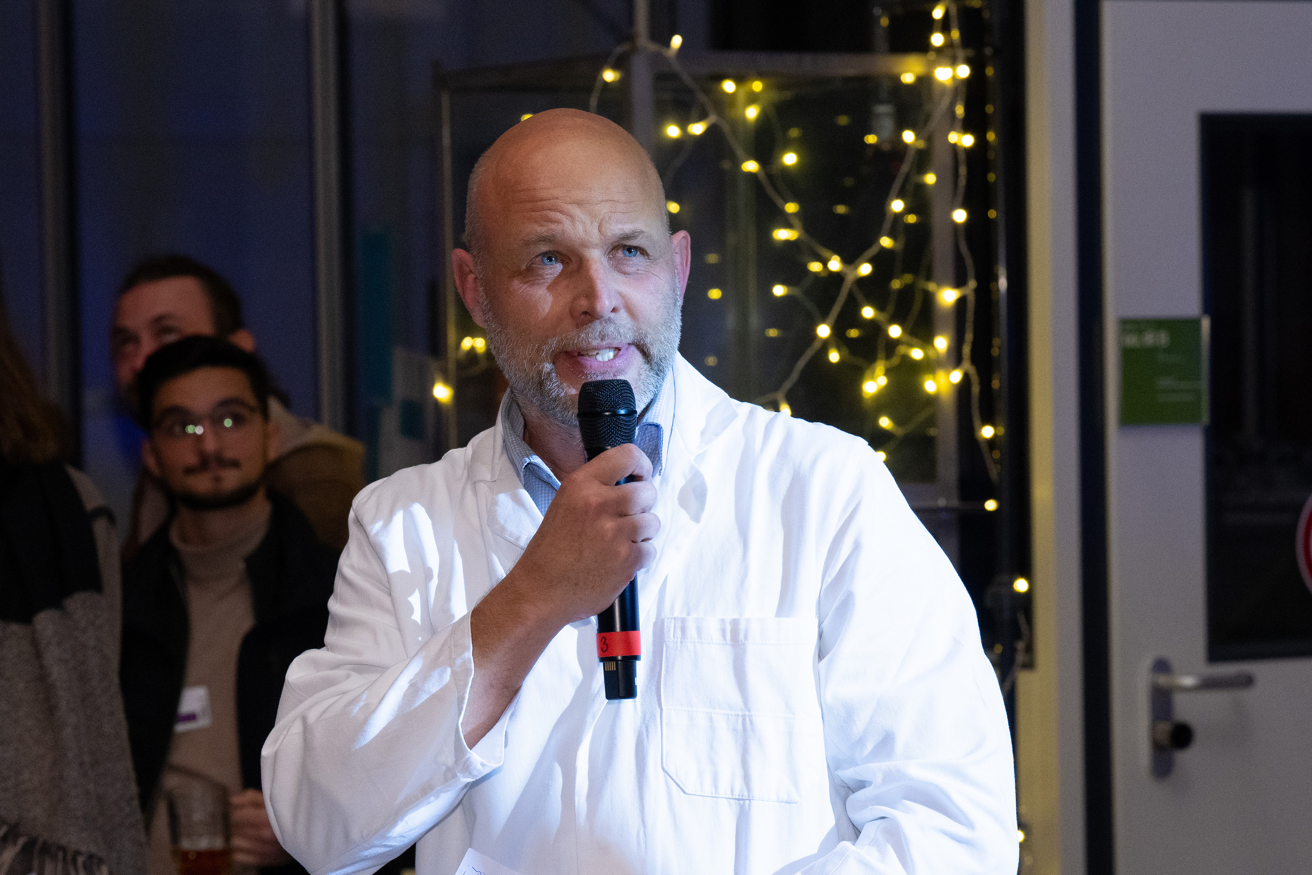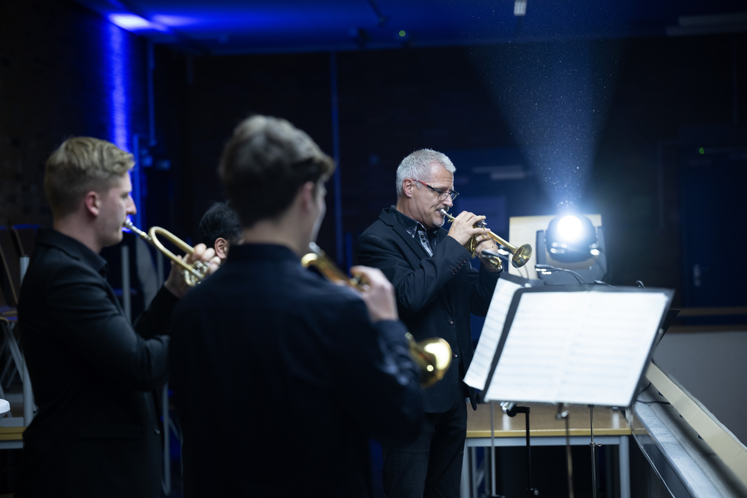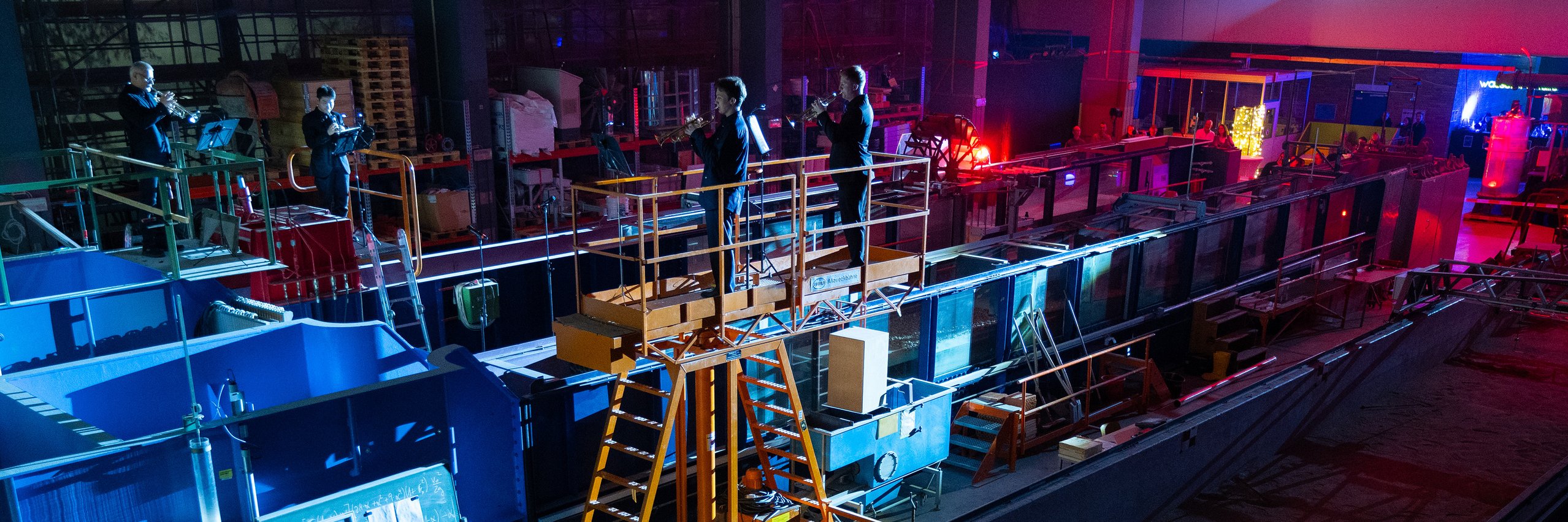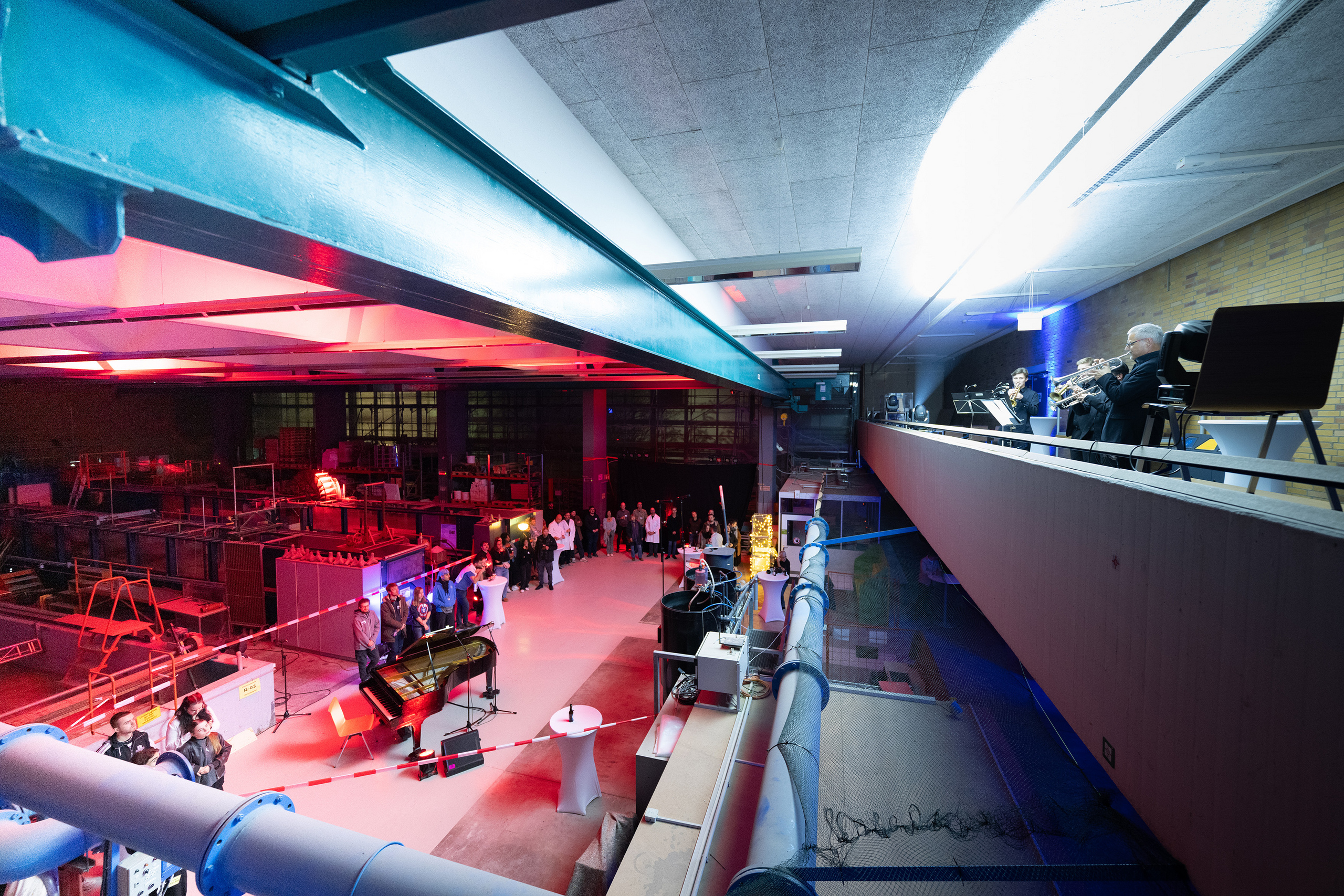 Wo sonst Wasser durch Strömungskanäle rauscht und blubbert, erklangen festliche Trompetenklänge von der Empore: Ein Ensemble der Darmstädter Akademie für Tonkunst brachte unter der Leitung von Manfred Bockschweiger Händels Wassermusik und Verdis Triumphmarsch aus der Oper "Aida" zu Gehör. Am 14. November verwandelte sich die h_da-Wasserbauhalle in eine Event-Location erster Güte: Die Fachbereiche Bau- und Umweltingenieurwesen sowie Media luden zur ersten "Lab Night" ein und präsentierten den gut 100 Gästen ein professionell in Szene gesetztes Großlabor – mit Lichteffekten, perfektem Sound und einem spannungsreichen Konzertprogramm.