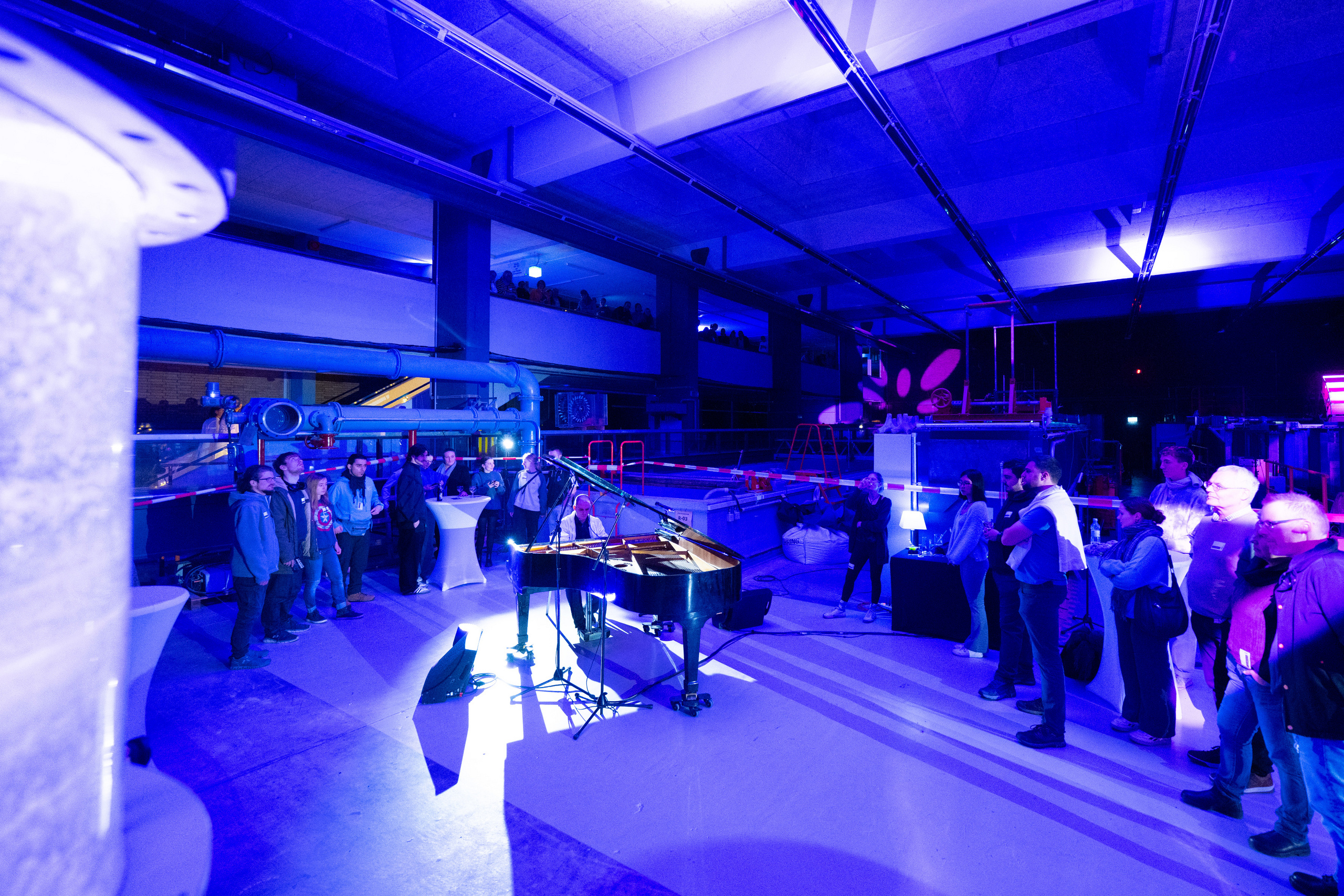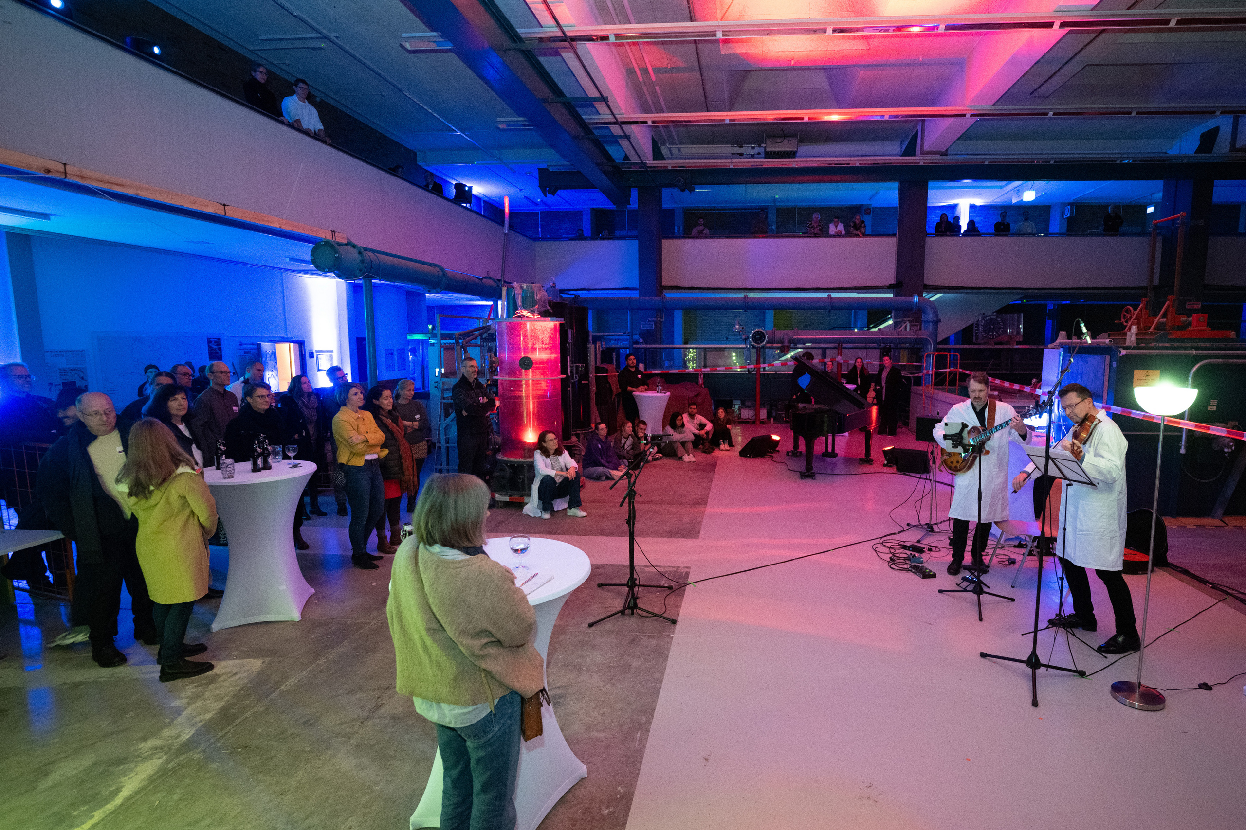 Zwischen den Musikblöcken blieb Zeit zum Plaudern, Essen und Trinken. Wer sich für den eigentlichen Zweck der Wasserbauhalle interessierte, konnte sich im lockeren Gespräch mit Hausherrin und h_da-Vizepräsidentin Prof. Dr. Nicole Saenger austauschen. An der "WasserBarHalle" war dabei für alles gesorgt, um die Gäste bei Laune zu halten. Labor, mal ganz anders? Mission accomplished. Organisiert wurde das Event von einem großen Team des Fachbereichs Bau- und Umweltingenieurwesen, dessen Dekan Prof. Dr. Arne Speer die Idee entwickelte und die Initiative ergriff, und Studierenden des Fachbereichs Media. Die Gäste forderten Zugaben von sämtlichen Musikern. Und auch fürs Orga-Team hieß es am Ende: Bravo – und da capo!
