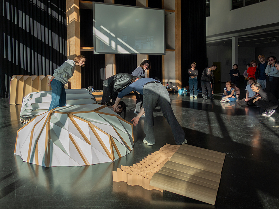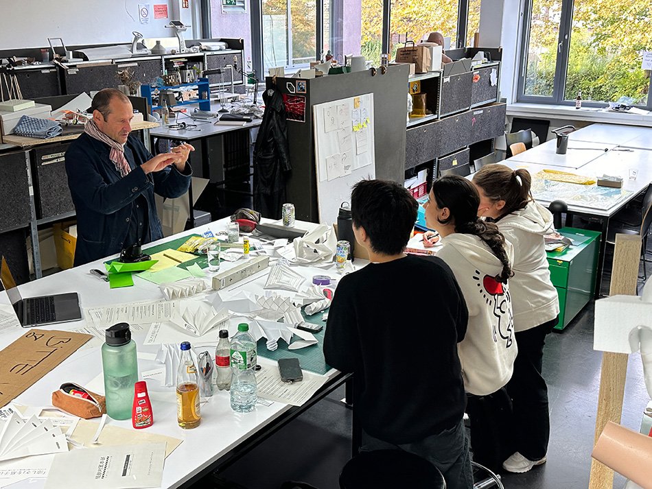 Seit fast 20 Jahren pflegt der Fachbereich Gestaltung der Hochschule Darmstadt einen regen Austausch mit dem Department of Design der japanischen Kyushu University in Fukuoka. Auf Initiative von Prof. Dr. Madoka Yuki, Prof. Tom Philipps und Prof. Tino Melzer fand nun, unterstützt vom International Office der h_da, ein erster gemeinsamer Workshop in Darmstadt statt: Eine gute Woche lang befassten sich die Teilnehmenden vom 15. – 22. Oktober 2024 mit dem Thema „Origami Engineering and Product Design“.