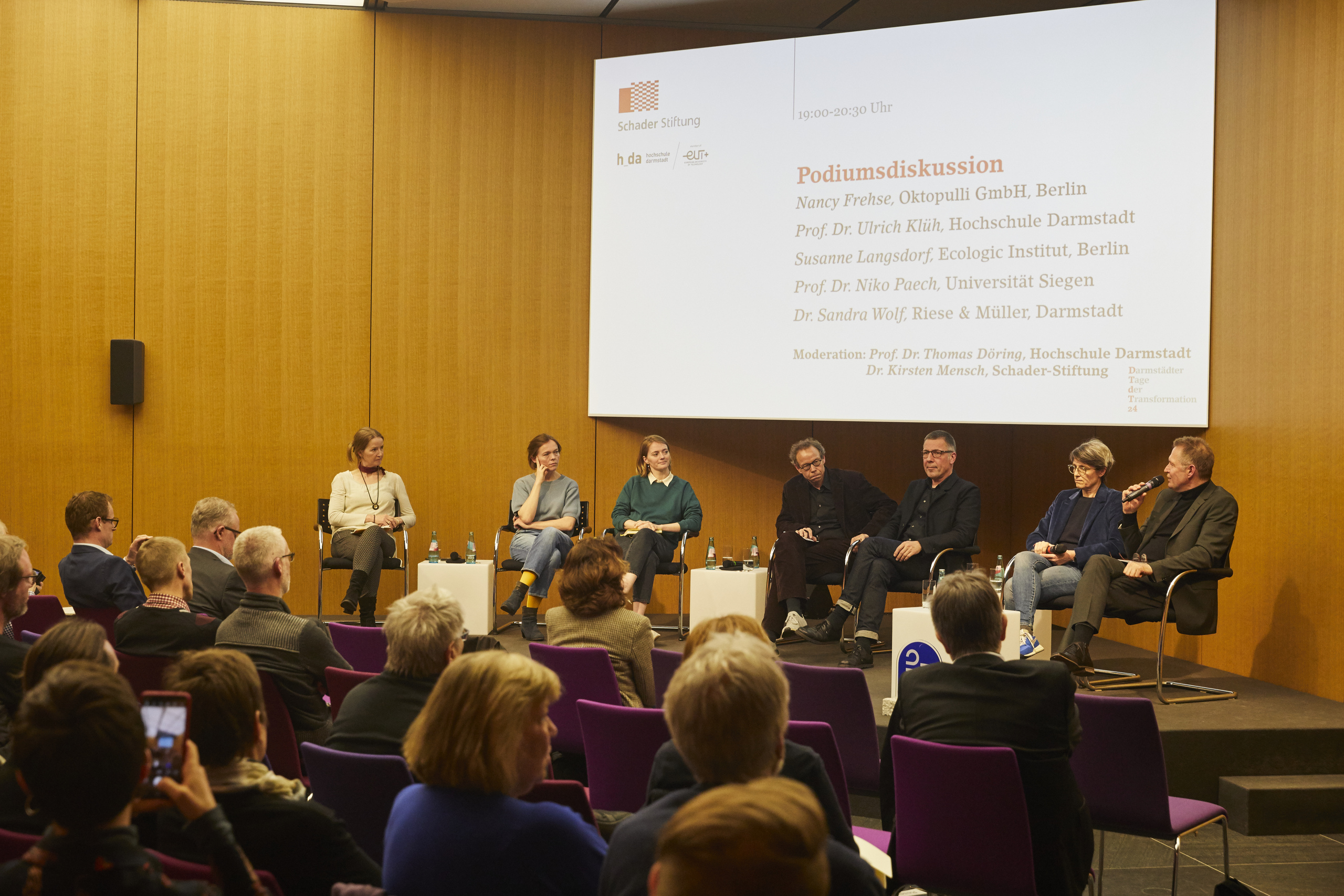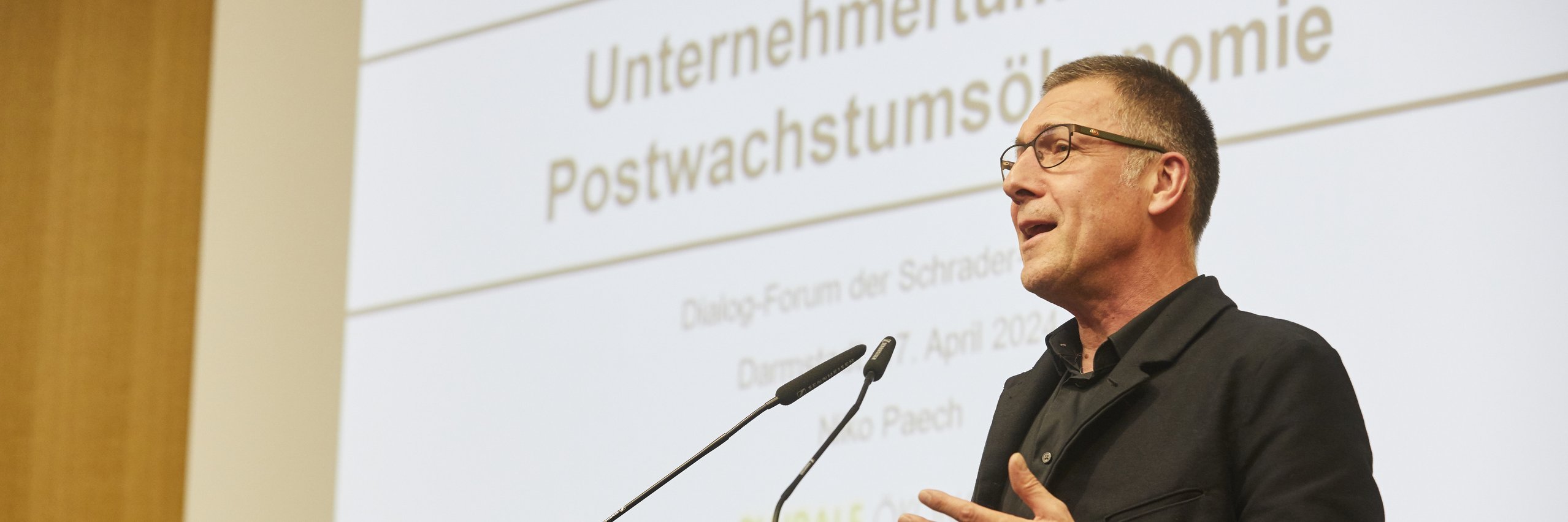 „Postwachstumsökonomie für kleine und mittlere Unternehmen“ war Thema des fünften h_da Dialog-Forums am 17. April. Auf Einladung von h_da und Schader-Stiftung verfolgten im Schader-Forum mehr als 200 Gäste Redebeiträge und Diskussion und beteiligten sich mit Fragen. Protagonist des Abends war Prof. Dr. Niko Paech von der Universität Siegen, der prominenteste deutsche Vertreter der Postwachstumsökonomie.