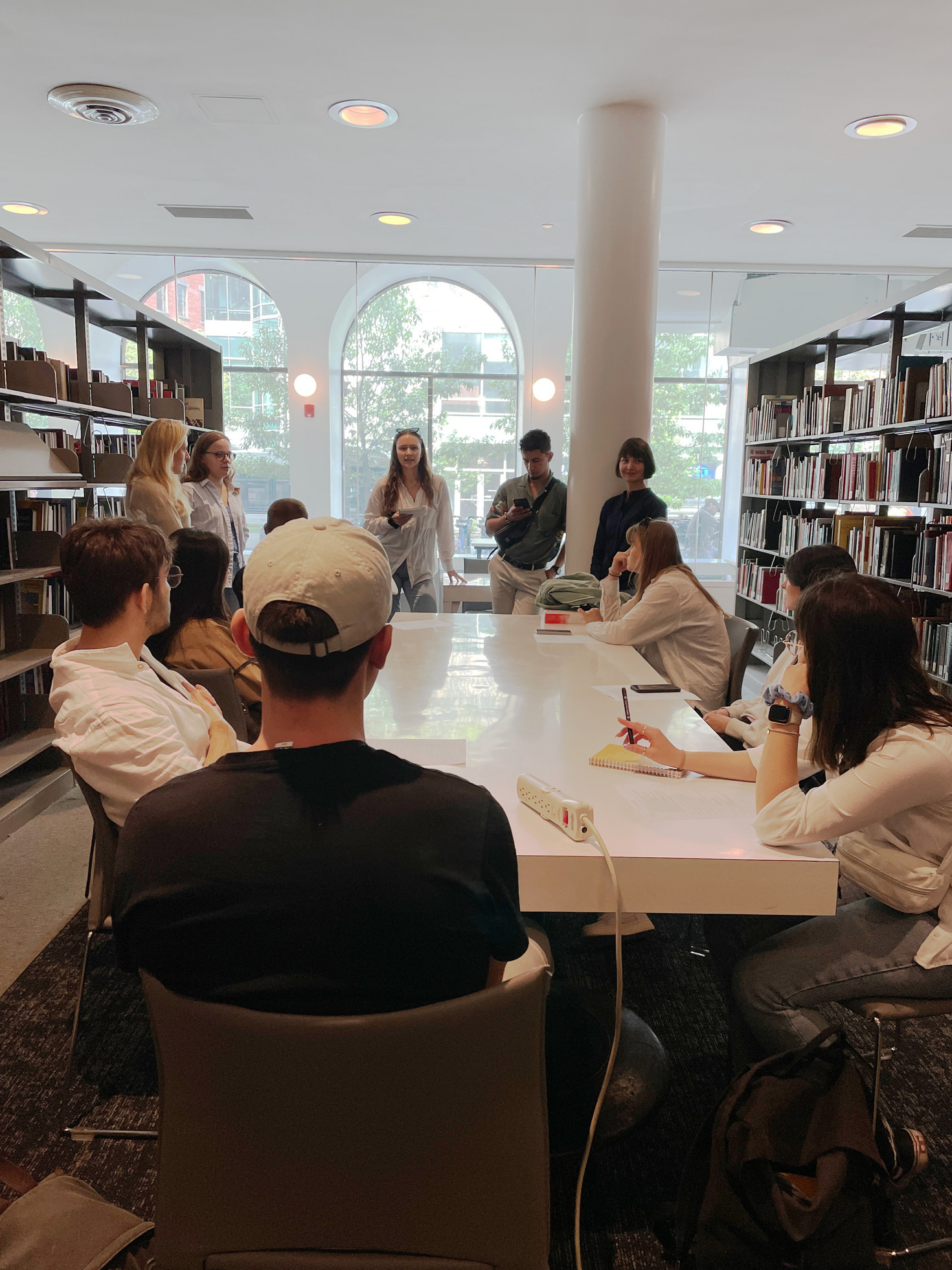Die andere Exkursionsgruppe mit Fokus auf Innenarchitektur hat sich unterdessen in einem Workshop am Pratt Institute als zweiter New Yorker Partnerhochschule mit deren Professorin Alison B. Snyder sowie von der h_da Professor Lars Uwe Bleher und Katharina Körber mit Unterschieden und Gemeinsamkeiten der Lehre dort und an der h_da beschäftigt. Den Eindruck von einem „sehr unterschiedlichen Arbeiten und Denken“ hat etwa Yasaman Zeinali gewonnen und nennt ein Beispiel: „Für uns müssen Entwürfe vor allem funktionieren, unsere Partnerinnen und Partner in New York denken da freier und achten mehr auf schöne Formen und Ideen“. Im Gegensatz zu Deutschland, so merkt Katharina Körber hierzu an, würden dort nur ein Drittel der Architektur-Lehrenden auch selbst bauen und kämen teils aus anderen Fächern. „Das führt zu einem weiteren Blick, das Studium ist sehr viel experimenteller und auch bei der Interdisziplinarität passiert viel“, sagt sie einerseits. „Andererseits ist die Lehre stellenweise zu weit weg von der Realität, das deutsche Studium bereitet mit mehr Praxisbezug auf den Beruf vor.“